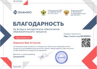 • 2021г. «Педагогический инструментарий развития учебно-познавательной активности учащихся», Смоленск, ООО «Знанио». Удостоверение 6752577629561 (Рег. № КС-2543187), 72 часа, 08.01.2021г. – 01.03.2021г.
